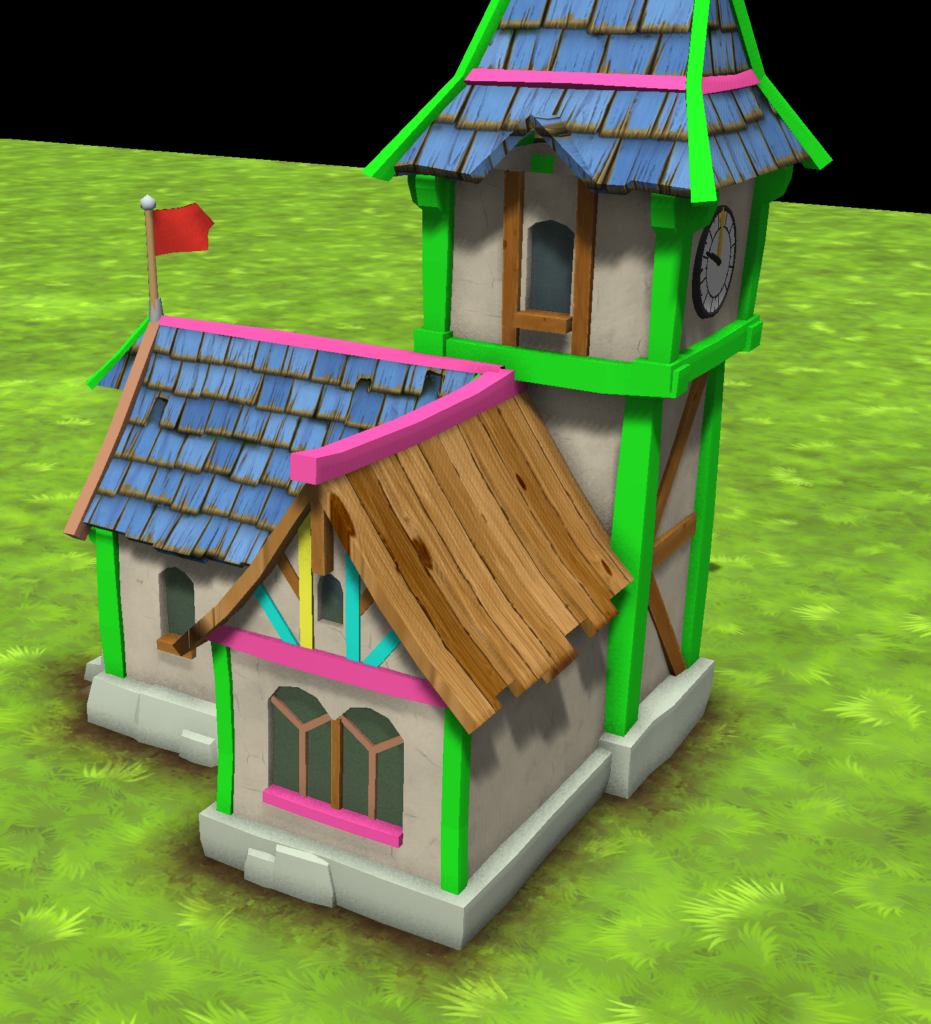 In some cases planks are too bent and/or slanted (towers roof). They can still be “salvaged” if plank-detection rules are slightly relaxed. After all, maybe it is better to texture something suboptimally than to not texture it at all. This is a balance.