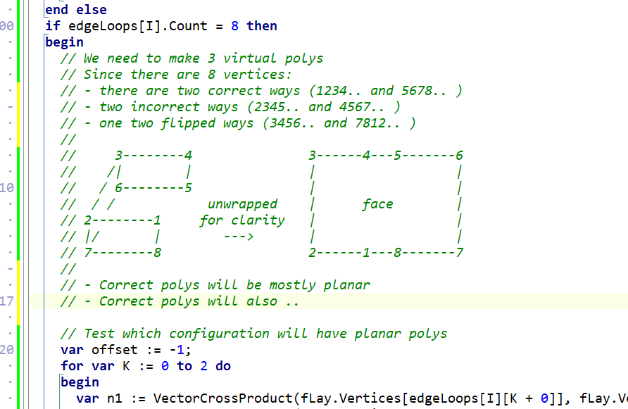 * having most of the wood geometry modelled using quads simplifies the algorithm by a lot (since the engine supports multi-vertex polygons since that helps with better normal shading)